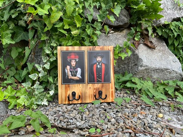 Dekoratives Schlüsselbrett aus bearbeitetem Kiefernholz mit zwei Doppel Schlüsselhaken im Schwarzwaldstyle.